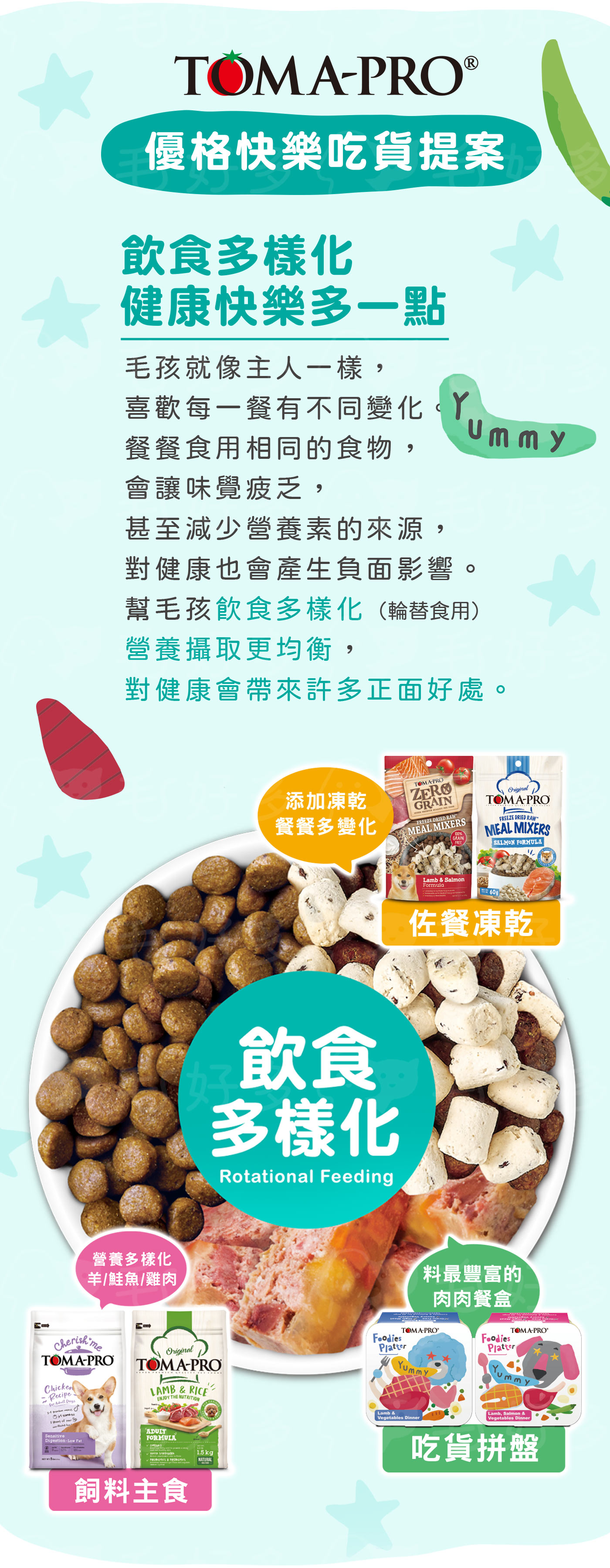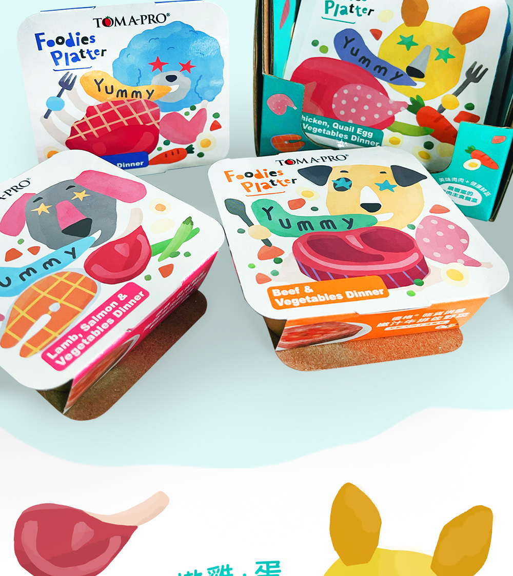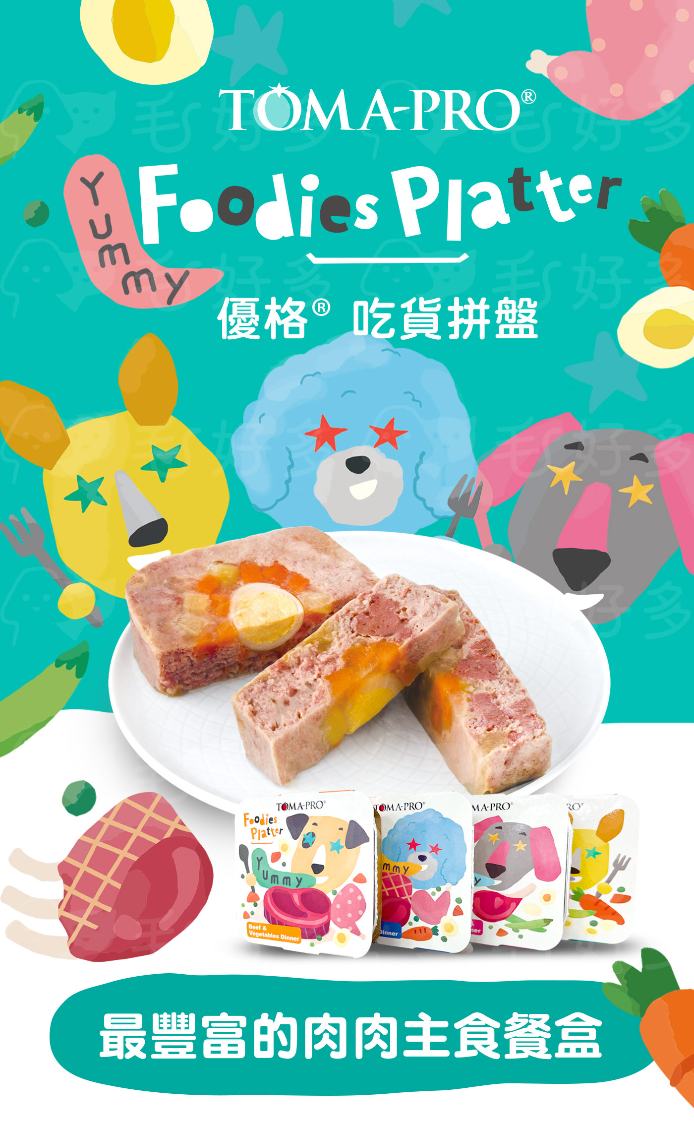 狗狗對於美味有超乎一盤的要求。優格吃貨拼盤以豐富的多樣食材去滿足這些小小吃貨的靈魂