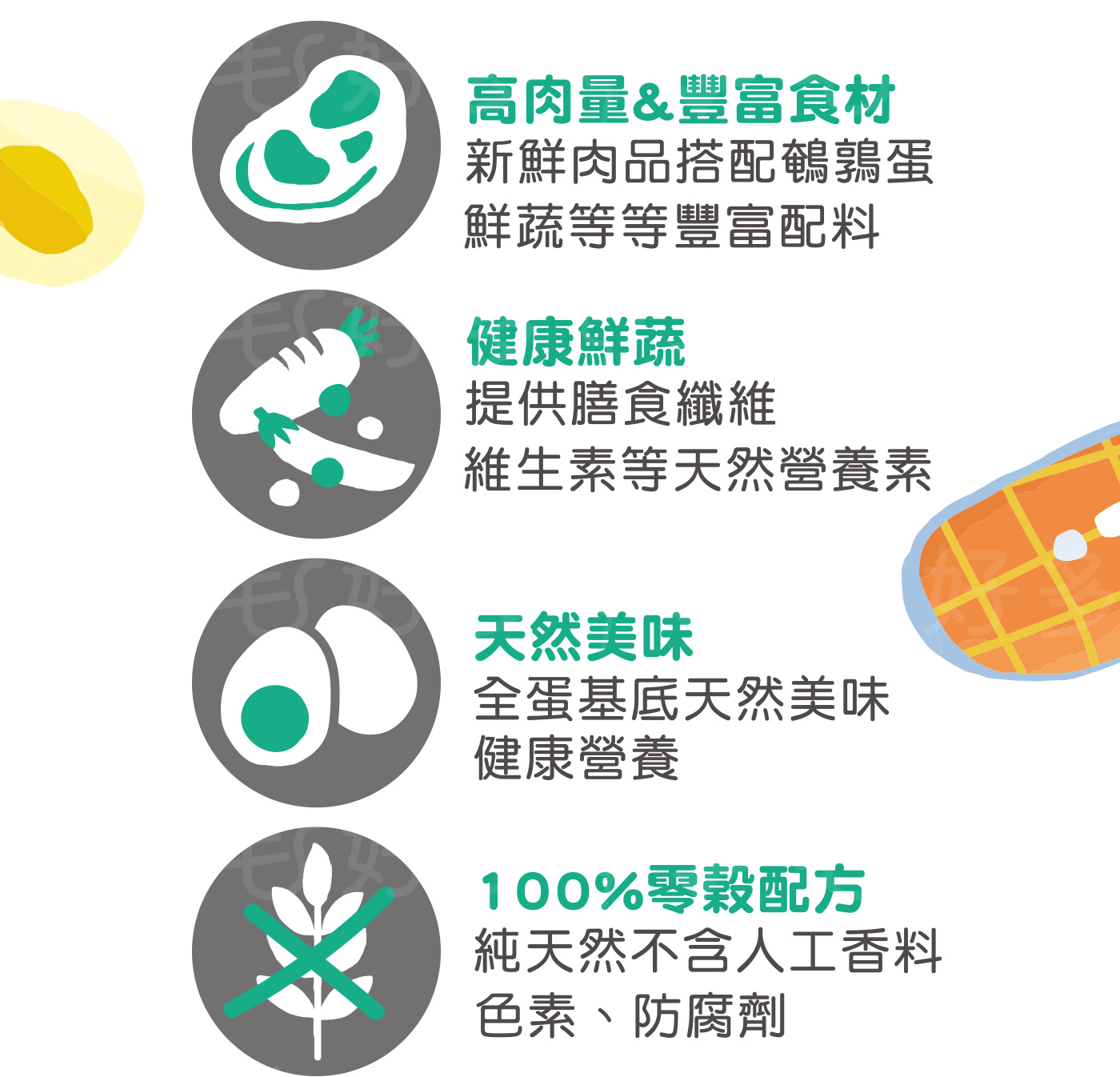 100%零榖配方:純天然不含人工香料、色素、防腐劑