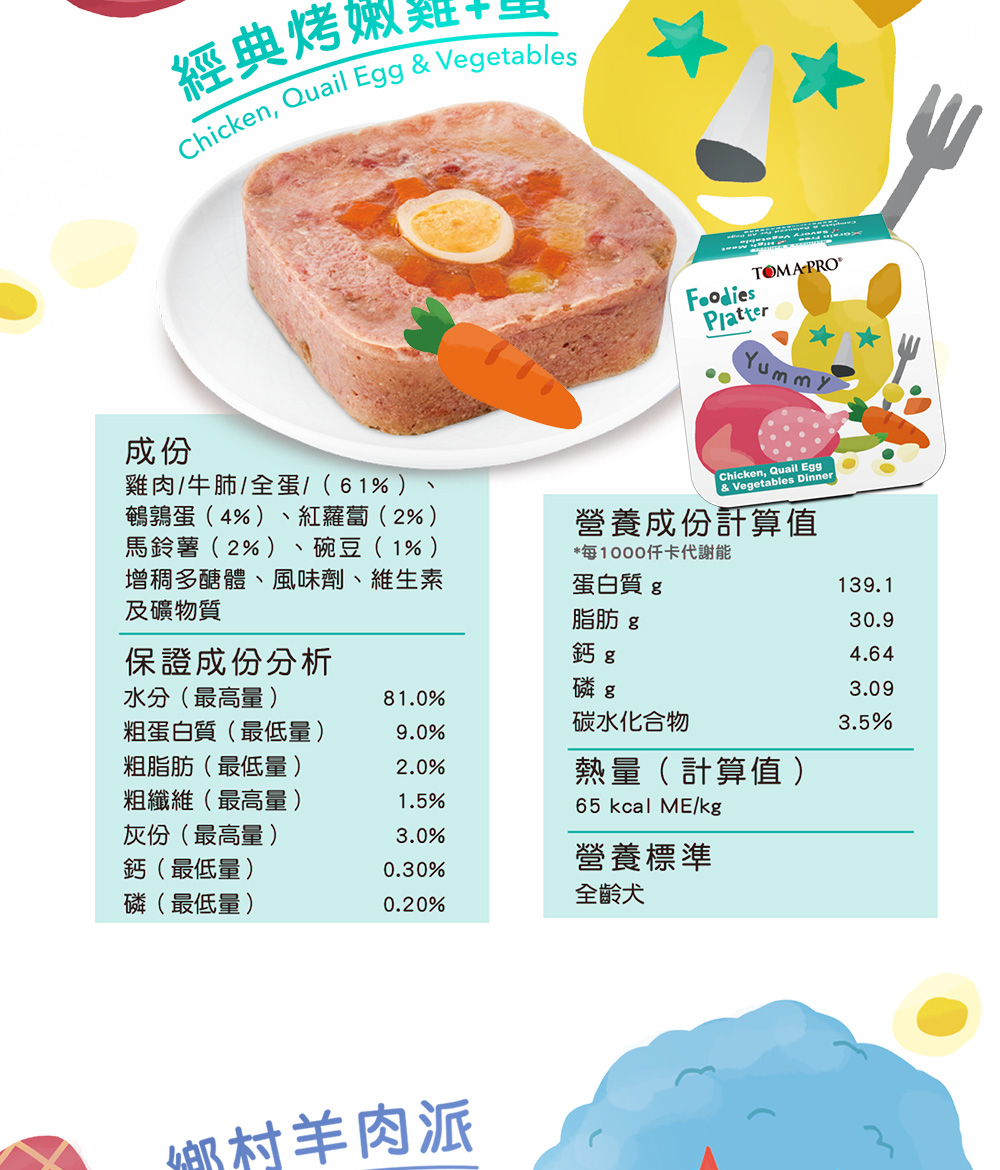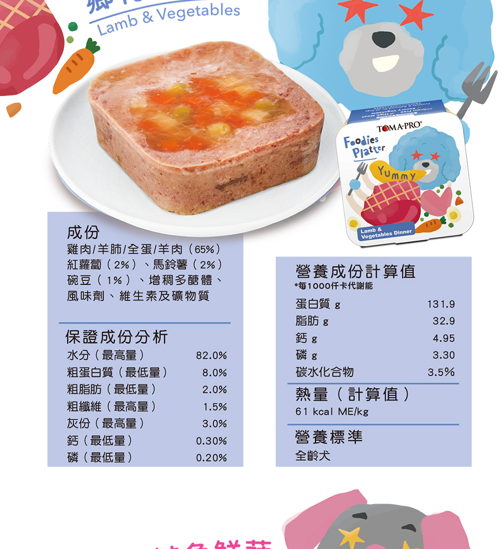 ★ 以上為建議餵食量,實際餵食時仍須視狗狗的活動量與生活環境等因素增減。
